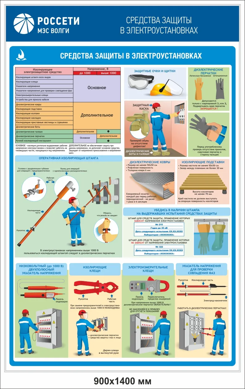 Стенд 900x1400, ПВХ 4 мм, ал. профильРоссети МЭС Волги_Средства защиты в электроустановках (1 плакат ГАСЗНАК)